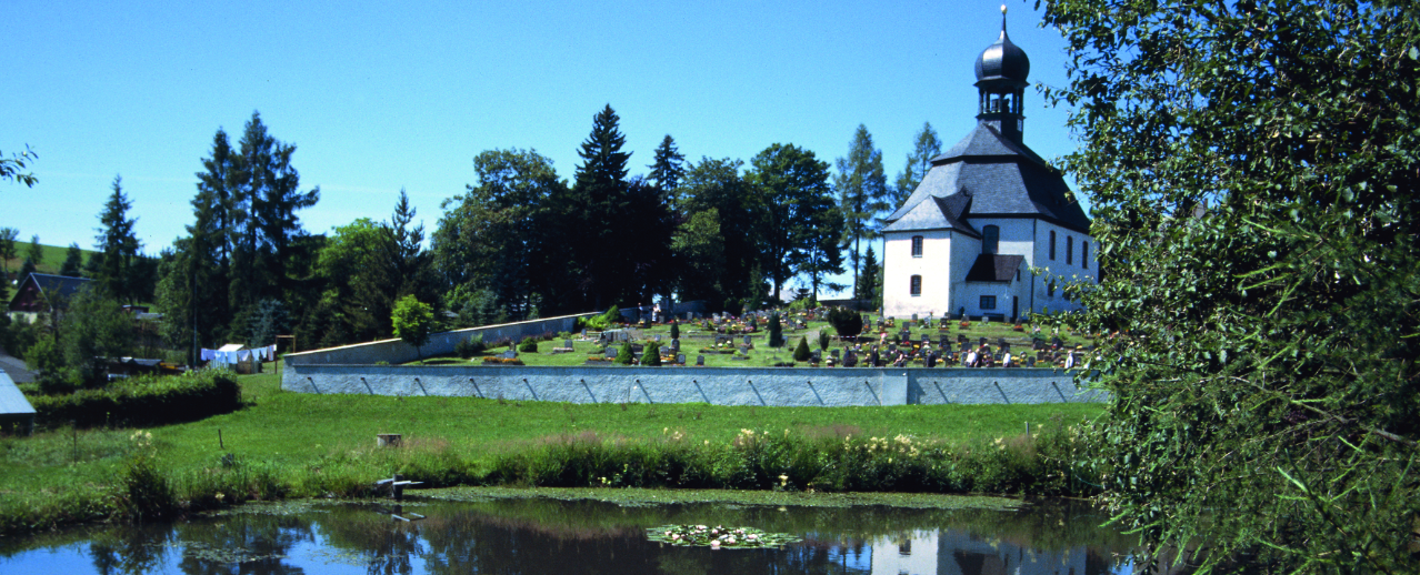 Ein gut erschlossenes Wanderwegenetz lädt zu Erkundungen der unberührten Natur, auch über die Grenze hinweg nach Kalek oder Načetin, ein. Im Winter führen gespurte Loipen entlang der Skimagistrale bis nach Satzung oder nach Pobershau. Das Herzstück des Ortes ist die 1714 erbaute Heilig-Geist-Kirche, deren markante barocke Kuppel schon von Weitem zu sehen ist.