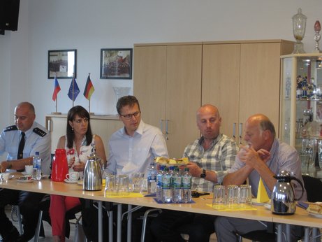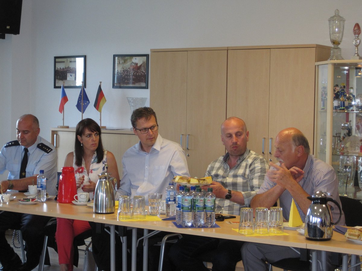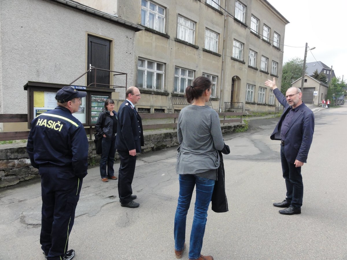 Ziel dieser Veranstaltung war die Bewertung der Ergebnisse des Projektes sowie die Abstimmung der künftigen Zusammenarbeit durch die Kooperationspartner. Herr Heinrich hielt einen kurzen Rückblick und würdigte das gemeinsam Geschaffene. Um das gemeinsame Ziel des Projektes – die Verbesserung des Brandschutzes beiderseits der Grenze und die Intensivierung der Zusammenarbeit der tschechischen und deutschen Feuerwehren – zu erreichen, war es zunächst notwendig, die technischen und räumlichen Voraussetzungen dafür zu schaffen. Dies – so konnte er feststellen – ist gelungen: Für die Freiwilligen Feuerwehren Most und Kalek wurden Fahrzeuge beschafft, die bereits bei grenzüberschreitenden Übungen zum Einsatz kamen. Im neu errichteten Gerätehaus der Freiwilligen Feuerwehr Satzung können nun gemeinsame Schulungen und Dienste durchgeführt werden. Sowohl das Jugendcamp im Juni vergangenen Jahres mit tschechischen und deutschen Kindern in Marienberg als auch das konstruktive Zusammenarbeiten der Feuerwehrkameraden beider Länder tragen dazu bei, Barrieren abzubauen und das Miteinander – auch über den Bereich des Brandschutzes hinaus – zu intensivieren.