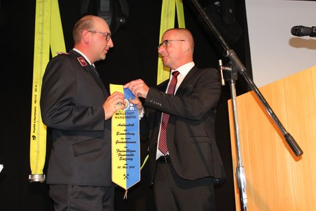 Nicht nur die Kameradinnen und Kameraden der Freiwilligen Feuerwehr Satzung hatten Grund zur Freude, sondern auch der ganze Ort und die Freunde aus dem benachbarten Tschechien feierten mit, denn nach einjähriger Bauzeit konnte am Freitag, dem 25. Mai 2018 das neue Feuerwehrgerätehaus in Satzung seiner Bestimmung übergeben werden. Am Abend fand im Festzelt die Festsitzung mit mehr als 200 geladenen Gästen statt. Zur Einweihungsfeier waren neben Ehrengästen und den Abordnungen der Marienberger Ortswehren auch Vertreter der Verwaltungen und die Kameradinnen und Kameraden der Partnerfeuerwehren aus Hora Svatého Šebestiána, Kalek und Most anwesend. Blumen, Glückwünsche, Geschenke und viele gute Wünsche durften die Satzunger entgegennehmen. „Für uns Kameraden und den gesamten Ortsteil Satzung ging damit ein großer Wunsch in Erfüllung. Da sind schon Emotionen mit im Spiel“, freute sich Wehrleiter Michael Rothe.